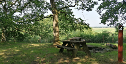 Teltplads i Harte Skov på kanten af Vester Nebel Ådal med bålsted og en fantastisk udsigt over ådalen.