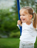 Tag en gyngetur i hjørnet af det grønne fælles areal ved Birkevej