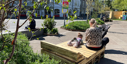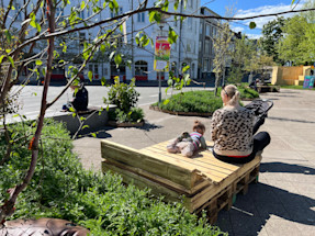 Verdensmålspladsen er en grøn oase med opholdsmøbler, blomster, buske og træer. Fyldt med aktiviteter i løbet af sommeren, så brug pladsen – oplev, deltag og bliv inspireret.